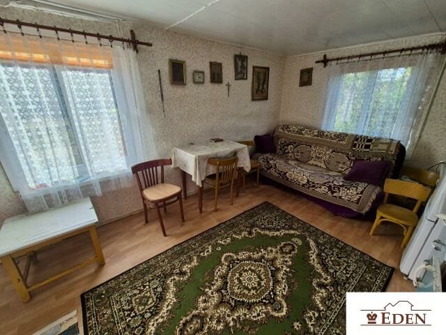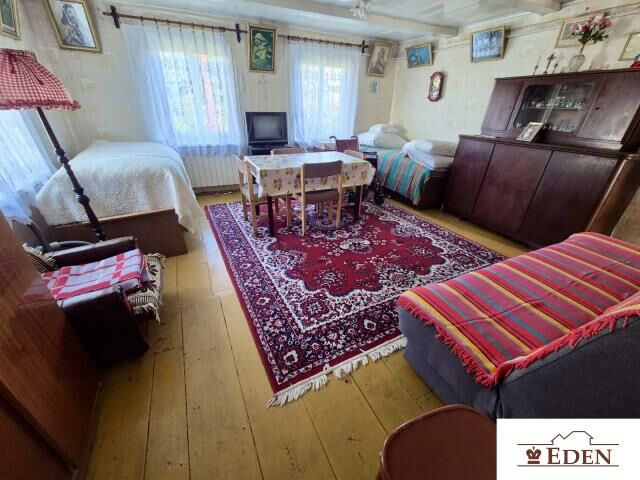 - Drewniany dom parterowy o pow. zabudowy ok. 60 m, na fundamentach betonowych.